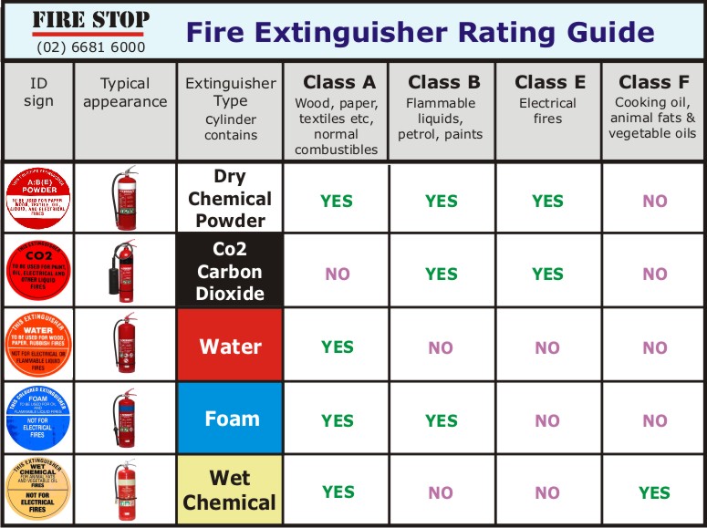 FIRE STOP’s Fire Extinguisher Selection Guide shows a